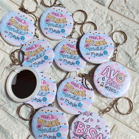 Chaveiro mini espelho em 2025 | Arte com resina, Espelho , Chaveiro .Styrofoam Art . Pink Glitter Keychains And Compact Mirror. Customizable Keychain Set.