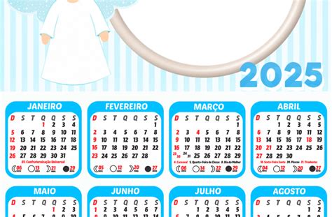 DownloadCalendário Anjinho Cute de Batizado 2025 PNG - Digital Grátis