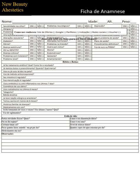 Download Baixar Ficha De Anamnese Alta Resolução CDR