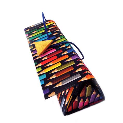 Estojo para lápis de cor, espaço para aproximadamente 100 unidades. Bolso na lateral com zíper para guardar cola, régua, borracha, tesoura, etc. Fechamento externo em elástico e velcro que permite um ajuste perfeito para quantidade de itens dentro da peça.
