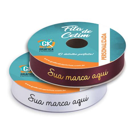 Mostrar todas as fotos. Fita de cetim personalizada 25mm x 100m. Iniciar Design.Realce a identidade da sua marca ou evento com uma fita de cetim personalizada . Elegante e sofisticada, é ideal para destacar qualquer embalagem.