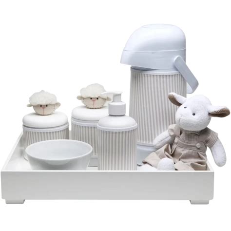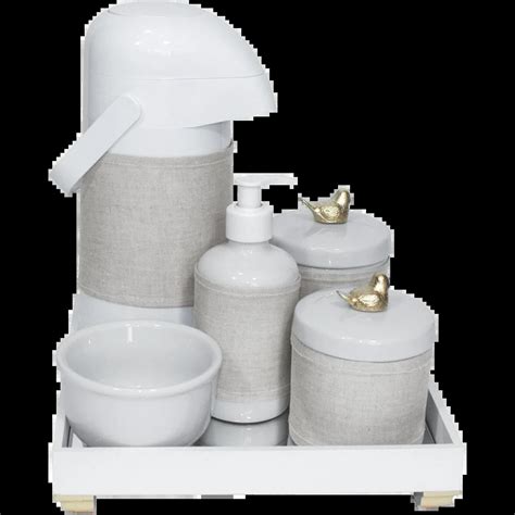 jogo potes kit higiene bebe porcelana branca ou... | Vazlon Brasil