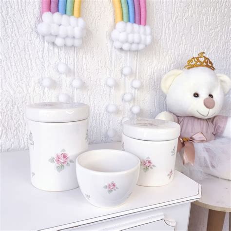 Kit Higiene Bebê Textura Trama Enxoval Presente Bebê 5 Peças. Kit Higiene Bebê Porcelana 5 Peças C/ Tampa Estampa Neném Cor Outro.