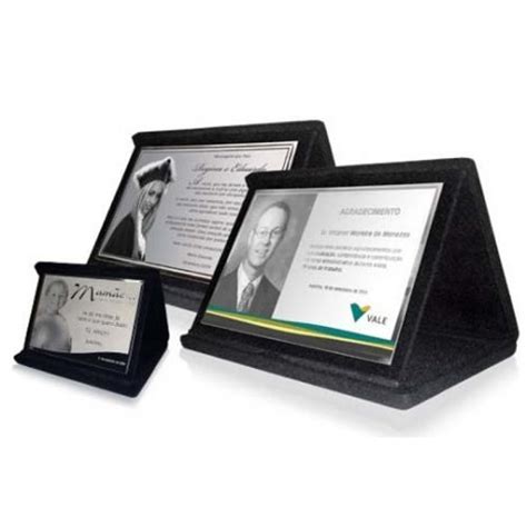 Tamanho: 12 x 8 cm. Opcionais: cor estojo, moldura, acrílico. |Descrição do Produto. Placa em Aço Inox, gravação em baixo relevo, tamanho 8 x 12 cm, com estojo.