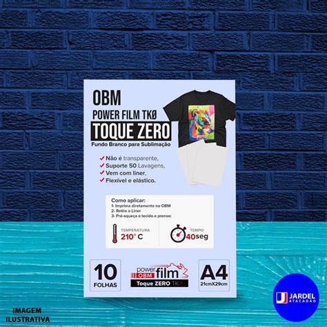 O Obm Power Film Tkø - Toque Zero - A4 - 10 Folhas Cor Branco é um produto de alta qualidade da marca PowerFilm. Com um acabamento fosco e uma gramagem de 110 g, este papel é perfeito para transferências.