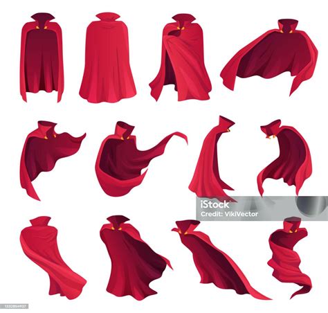 Capa de seda de tecido escarlate. Traje do manto ou ilustração do vetor dos desenhos animados da capa . Descrição. Elemento do traje da silhueta do super - herói da mulher.