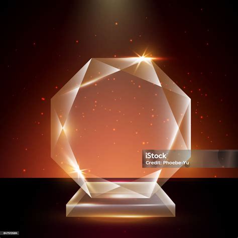 Acrilico . Vetor ilustração em vetor prêmio troféu de vidro. Vetor grátis troféu estrela de vidro de vetor com grande base vermelha, quadro indicador dourado e moldura em branco para vista frontal do copyspace isolado no fundo branco. Trofeu .