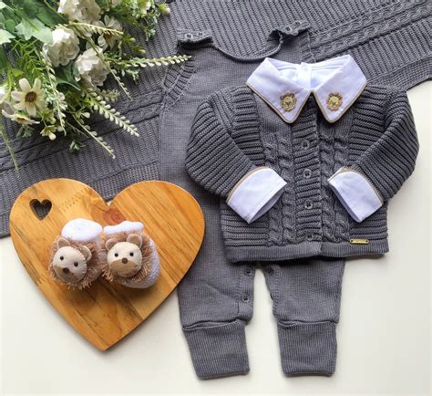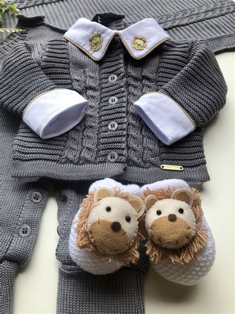 Kit Saída de Maternidade Completo Menino Azul Jeans. a knitted blue and white sweater with an anchor on it.